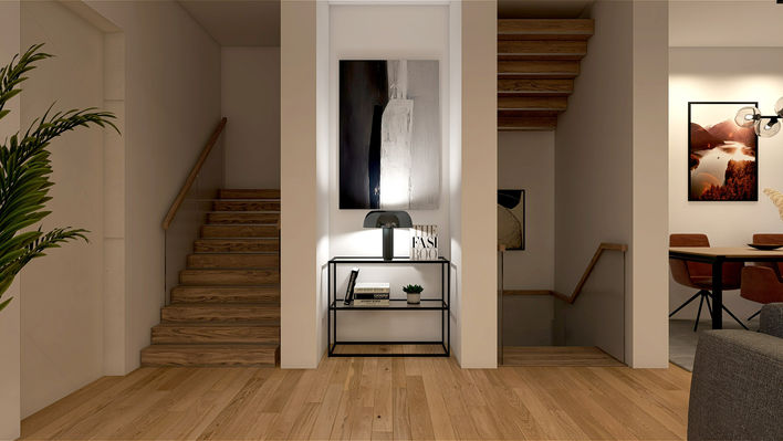 Vom leeren Haus zum stilvoll eingerichteten Zuhause für einen stilbewussten Junggesellen. Bei Neueinzug gab es hier nur ein paar Möbel und eine Menge Fragezeichen. Der Besitzer wusst nicht so recht, was ihm gefällt. "Schlicht und gemütlich" sollte es werden. Deko fehlte bisher komplett. Die Persönlichkeit des Besitzers spiegelt sich nun in den Räumen wieder. Wir haben optionale Wandfarben für den Essbereich vorgeschlagen, eine Shoppingliste erstellt und eine interaktive 360 Grad Ansicht ermöglichte es ihm, sich vorab schon im Raum umzuschauen und ein gutes Gefühl für seine neue Einrichtung zu bekommen.