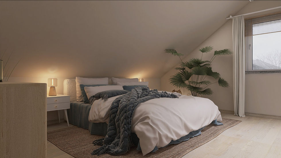 Der Wunsch unserer Kundin war ein modernes, gemütliches Schlafzimmer, indem sie sich so entspannt fühlt wie am Meer. Das ruhige Strandfeeling erreichen wir durch die Wahl der Farben Beige und Blau, die an den Sand und den Ozean erinnern. Naturmaterialien, warme Holztöne und Pflanzen heflen, eine gemütliche Atmosphäre zu zaubern. Wir haben eine Schranklösung gewählt, die offner und luftiger ist, als eine komplett geschlossene Schrankwand. Ein Teppich und Vorhänge geben dem Raum mehr Weichheit und verbessern außerdem die Akustik.